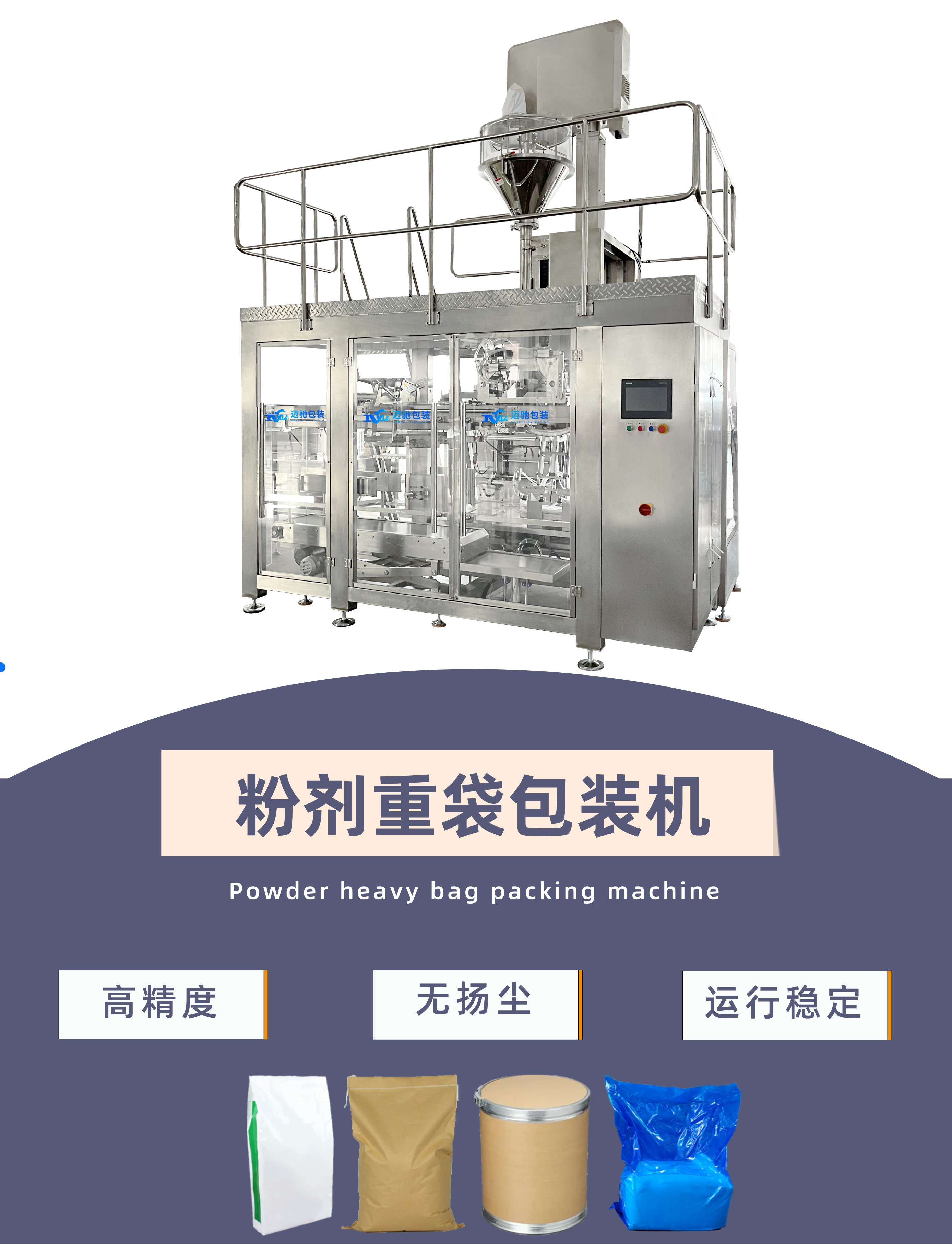 邁馳包裝設備是一家26年袋裝大袋二次包裝機工廠,可包裝淀粉、糖粉、預拌粉、辣椒粉、植脂末、孜然粉、五谷粉、生粉、薯粉、酵素粉、甜椒粉、椰粉、代餐粉、芝麻粉、調(diào)味...